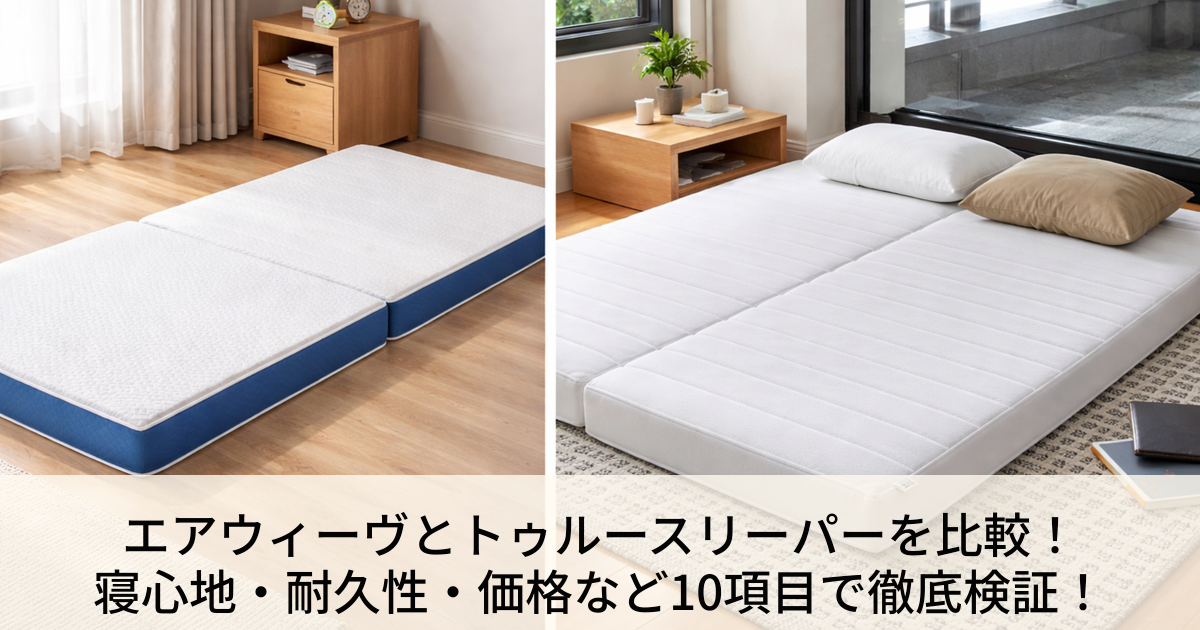この記事では、エアウィーヴエアウィーヴスマートZ01折りたたみマットレスとトゥルースリーパープレミアリッチ三つ折りタイプについて比較しています。