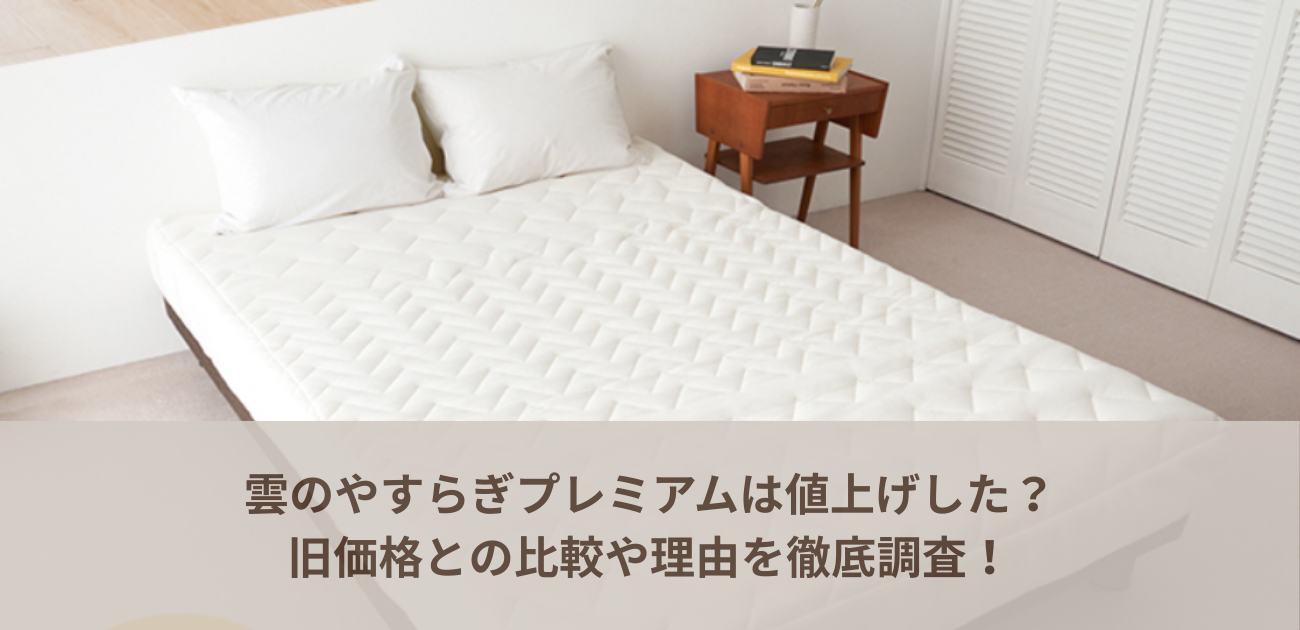 それ以前の価格は、雲のやすらぎプレミアムマットレスのシングルサイズで39,800円(税込)だったのに対し、現在では約10%程度の値上げの48,00円(税込)に改定されました。